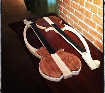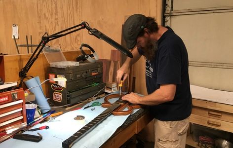 After reading Mickey Hart's "Drumming at The Edge of Magic" I was inspired to build a drum, and as luck would have it I located the book he referenced, "The Ojibwa Dance Drum: Its History and Construction" at the local library and made my first musical instrument. Many other percussion instruments followed, e.g. Shekeres, Bullroarers and a variety of other noise makers. Then one day I saw an article in the local newspaper about the Roberto-Venn School of Luthiery guitar making & repair school, made a phone call, took a tour and was signed up all within a day or two. After attending R-V, I went on to tour the country with my semi-successful ska band, Kongo Shock which lasted for about 5 years until the band dissolved. As Bob Marley once vocalized (as well as many others) "When one door is closed, don't you know another is open" and a position became available at Roberto-Venn where I am currently the Assistant Director and continue to build my original designs as well as play around locally in my current band Mr. Incommunicado.